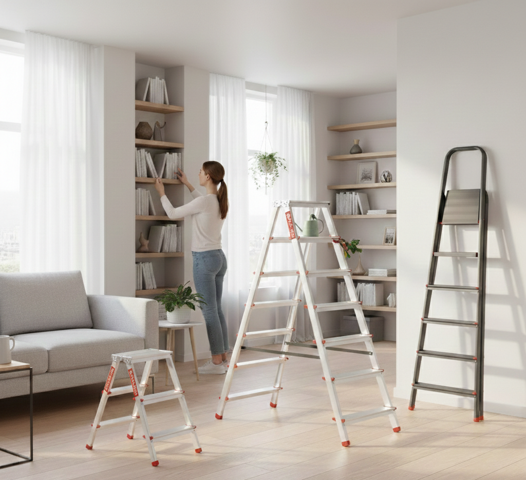 - Drabiny jednostronne – kompaktowe i łatwe do przechowywania, idealne do małych mieszkań.
